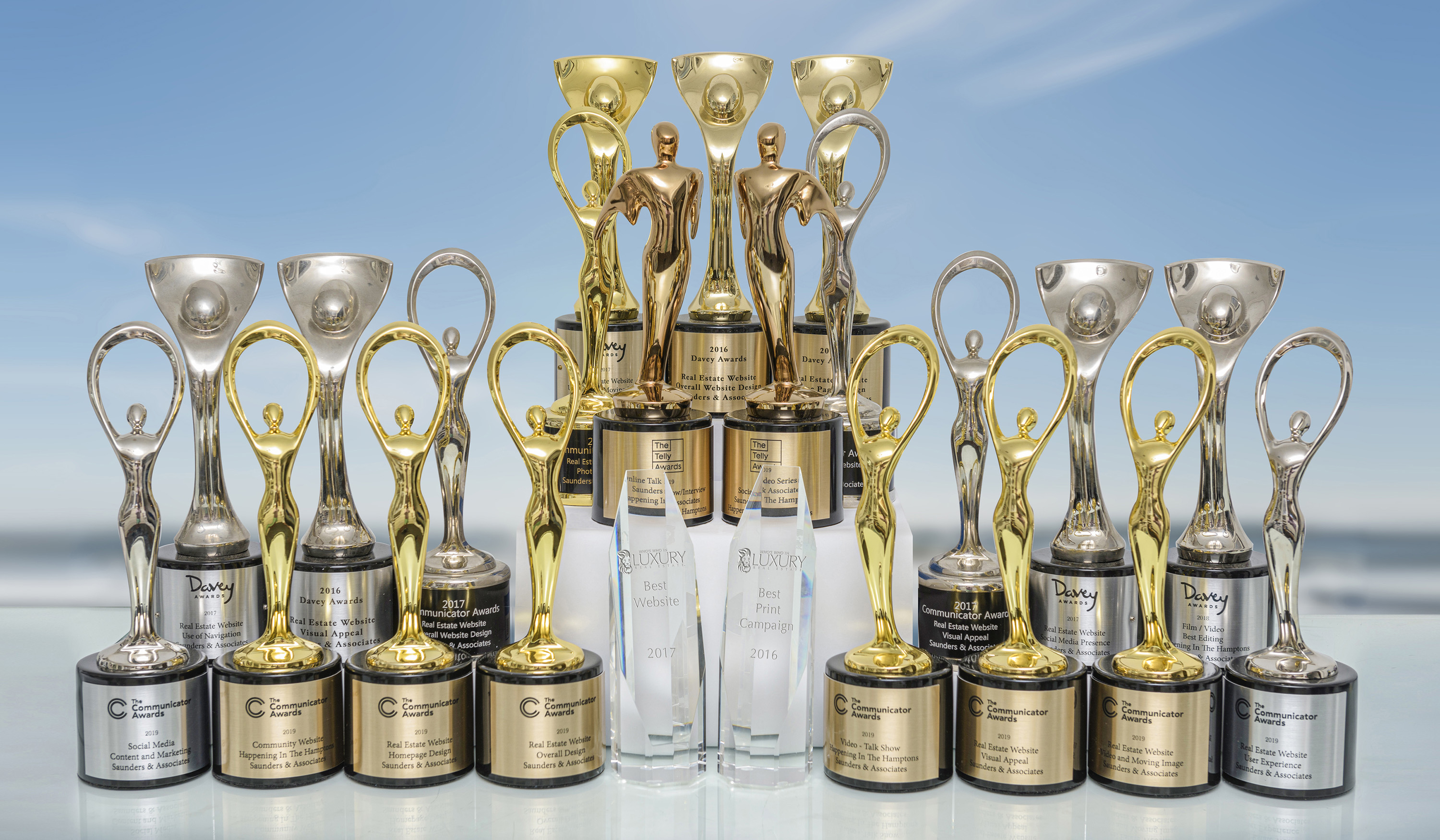 The Saunders marketing mandate is to continually conceive and launch new responsive ways to connect with qualified buyers for Hamptons properties around the corner and around the world. The firm has created a 15-person in-house creative studio that is staffed with full-time photographers and videographers, graphic designers, a senior graphic designer, web designer, social media experts, IT tech support, and a copy writer. Our efforts are increasingly recognized by professional organizations, and Saunders & Associates are the proud recipients of several prestigious industry awards.